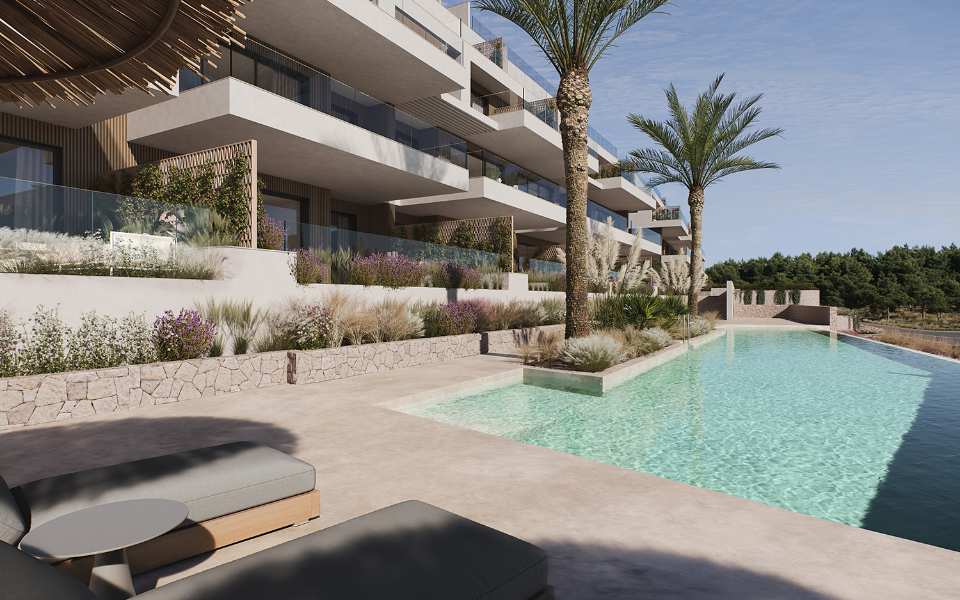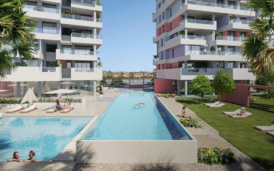 Nuevo complejo residencial de 170 apartamentos en Gran Alacant, con vistas al mar Mediterráneo y acceso directo a la playa de bandera azul El Carabassi.