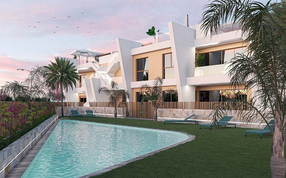Nuevo proyecto, dividido en bungalows y apartamentos de 2 o 3 dormitorios, ubicado en Pilar de la Horadada.